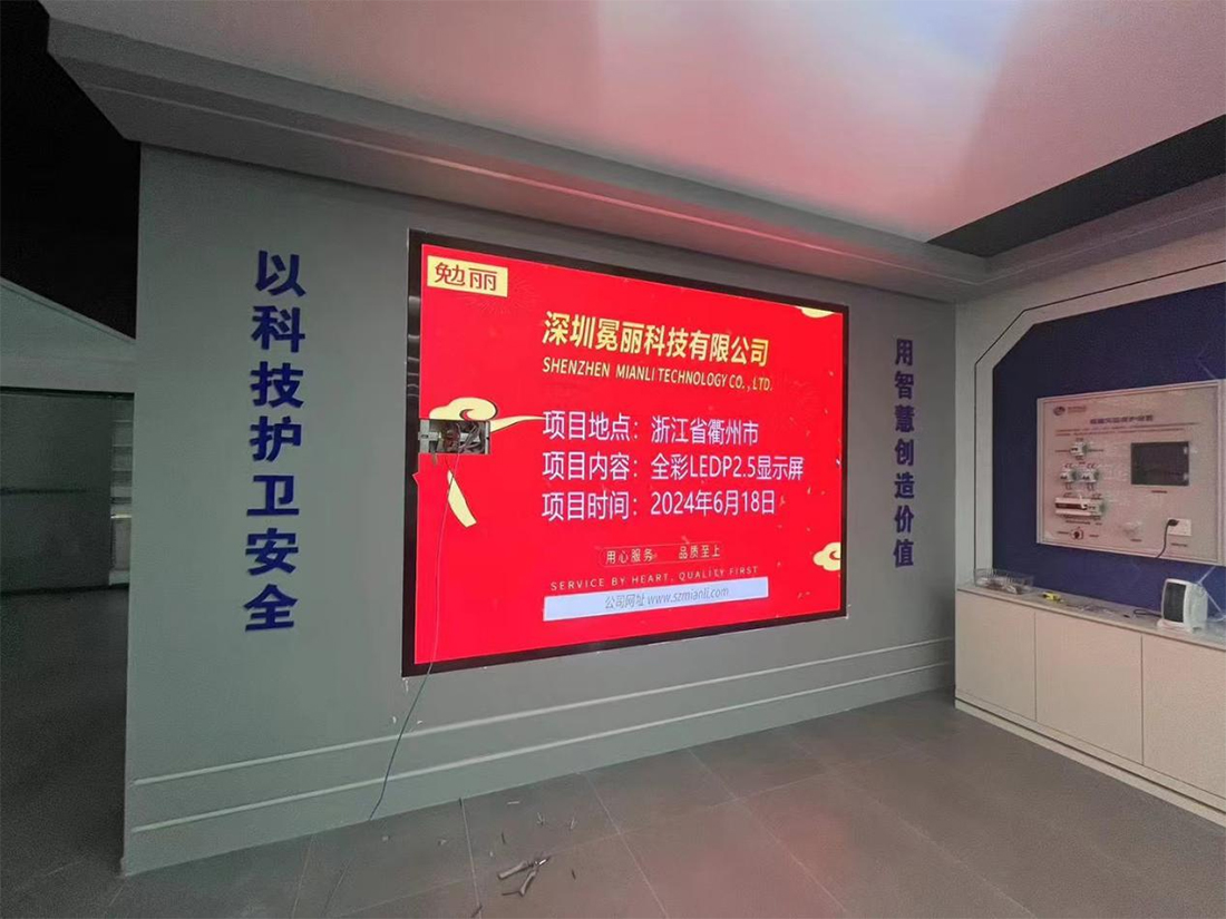 浙江衢州某展厅为宣传自家品牌,准备安装一套LED显示屏,经过多方商讨决定携手深圳冕丽科技有限公司合作打造一套全彩LED显示屏。